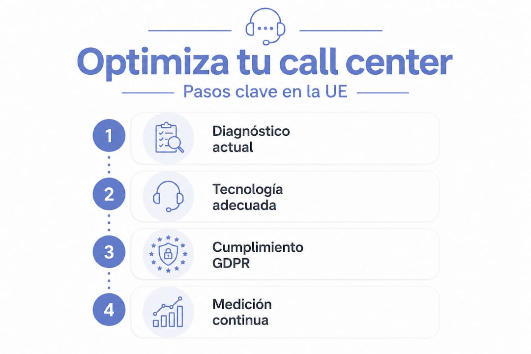 Un cliente espera cuatro minutos en línea, recibe una respuesta genérica en el idioma equivocado y cuelga sin resolver su problema. Esa situación se repite decenas de veces al día en muchos centros de llamadas de pymes europeas, y cada interacción fallida tiene un coste real: menor retención, peor reputación y pérdidas directas en ventas. Este artículo te ofrece una guía paso a paso para transformar tu call center en un activo eficiente, desde la evaluación inicial hasta la mejora continua, con atención especial al cumplimiento del Reglamento General de Protección de Datos (GDPR) y a la gestión multilingüe que exige el mercado europeo.
